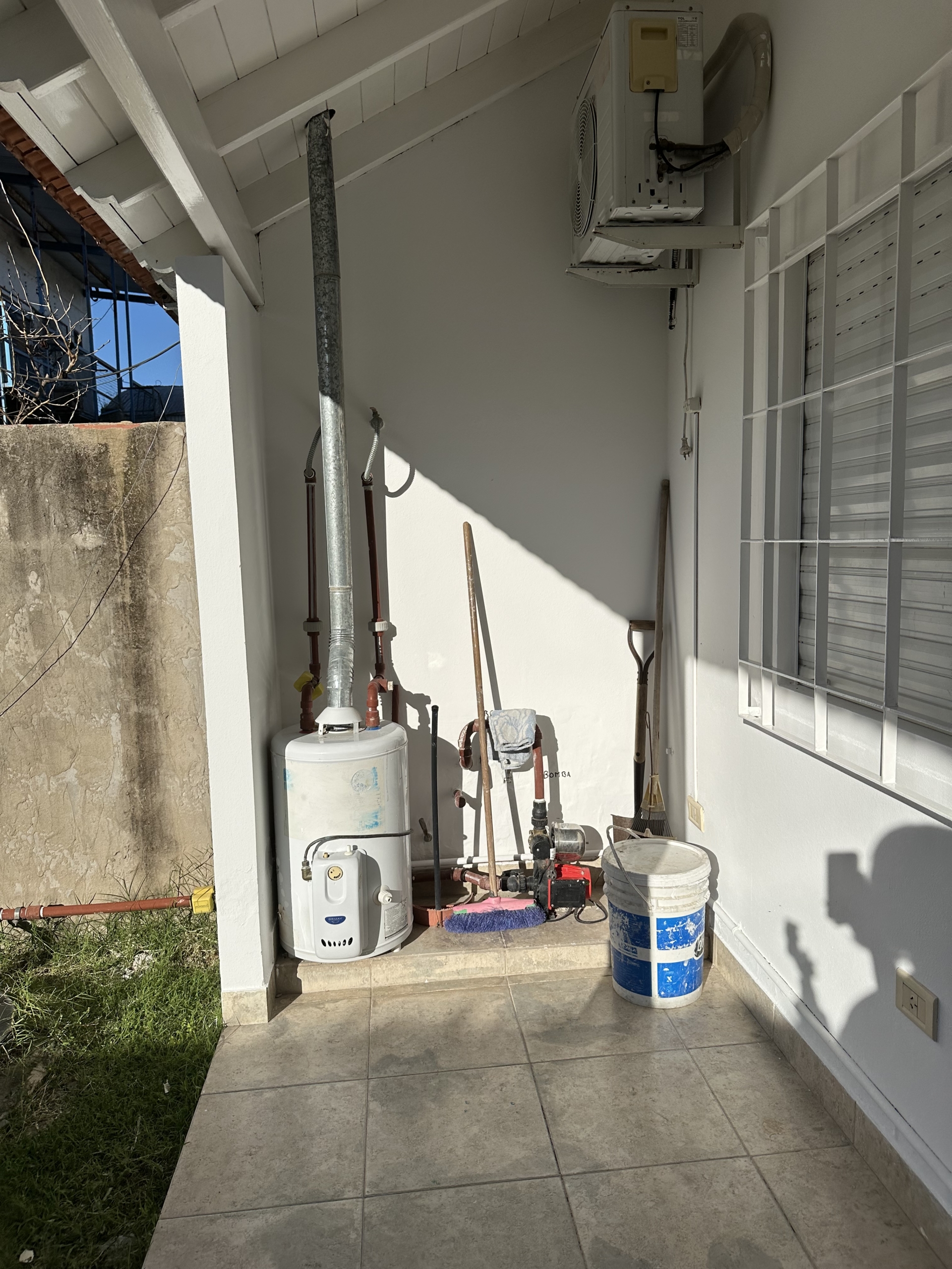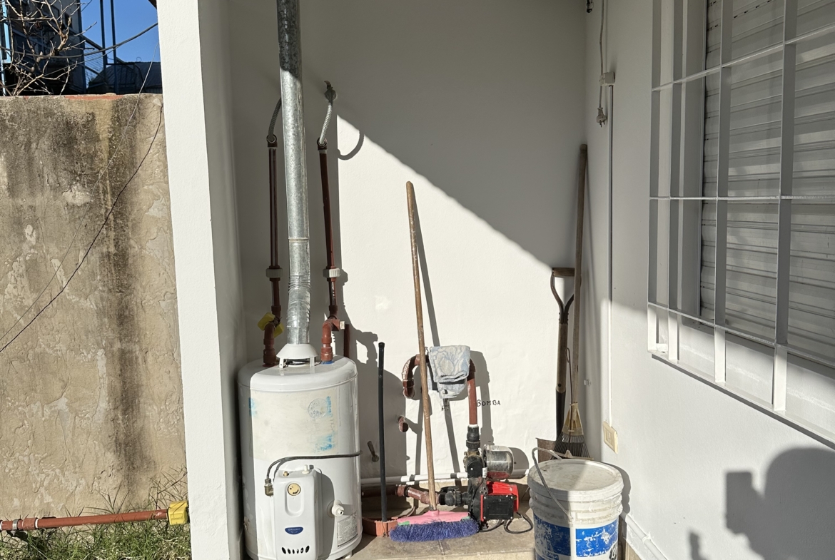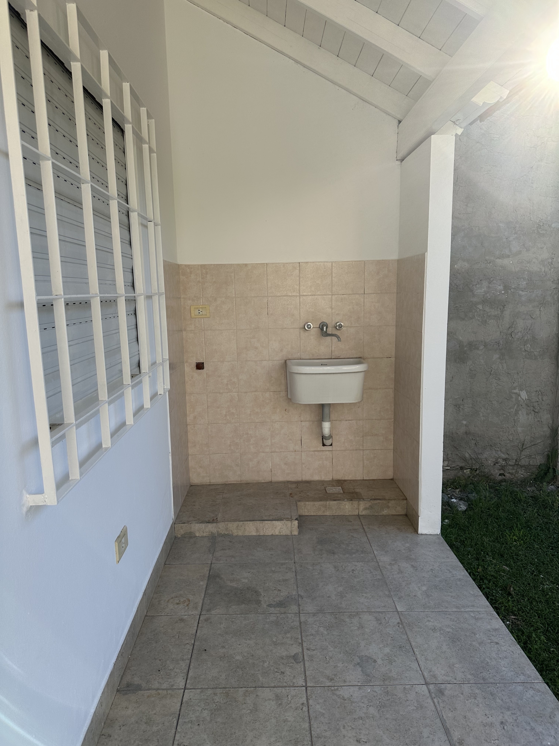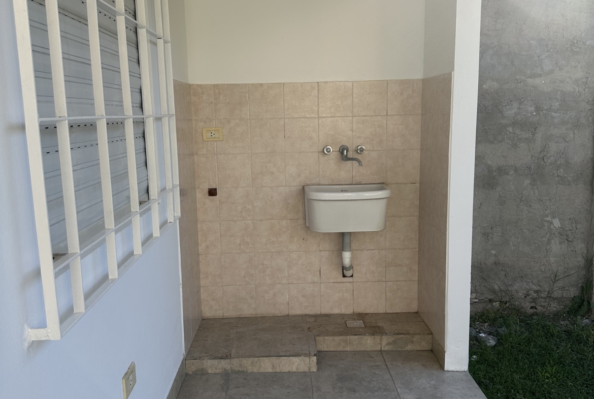 Jardín trasero con galería semiabierta que incluye lavadero con bacha y conexión para lava ropas.