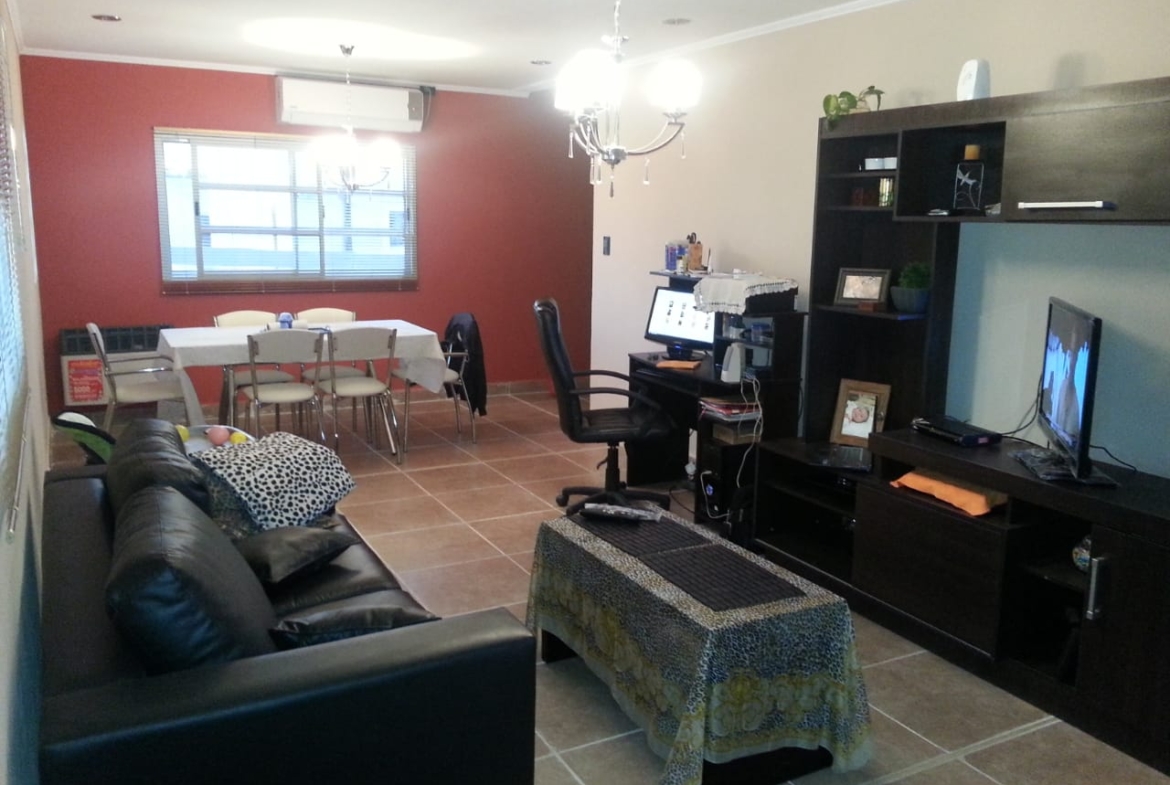 En planta baja cuenta con: dos dormitorios, amplio living, cocina, comedor, baño, quincho, pileta, cochera cubierta y cochera pasante para dos autos.