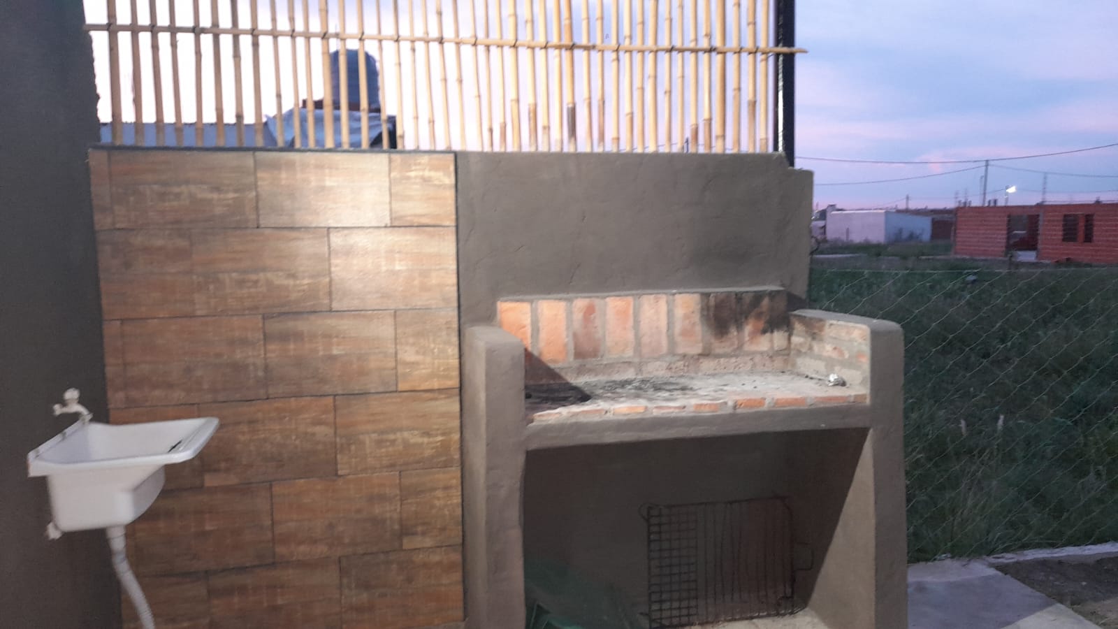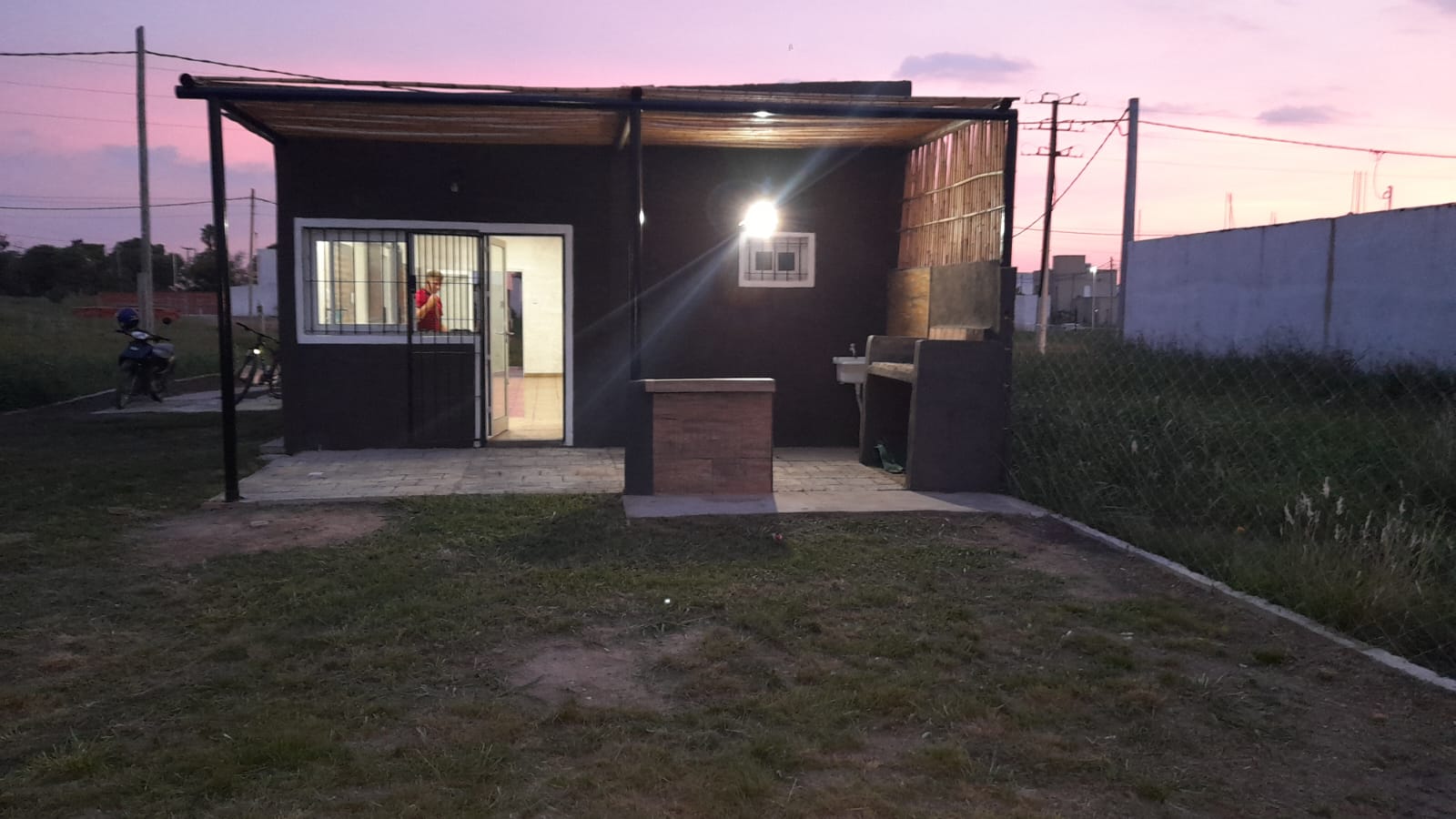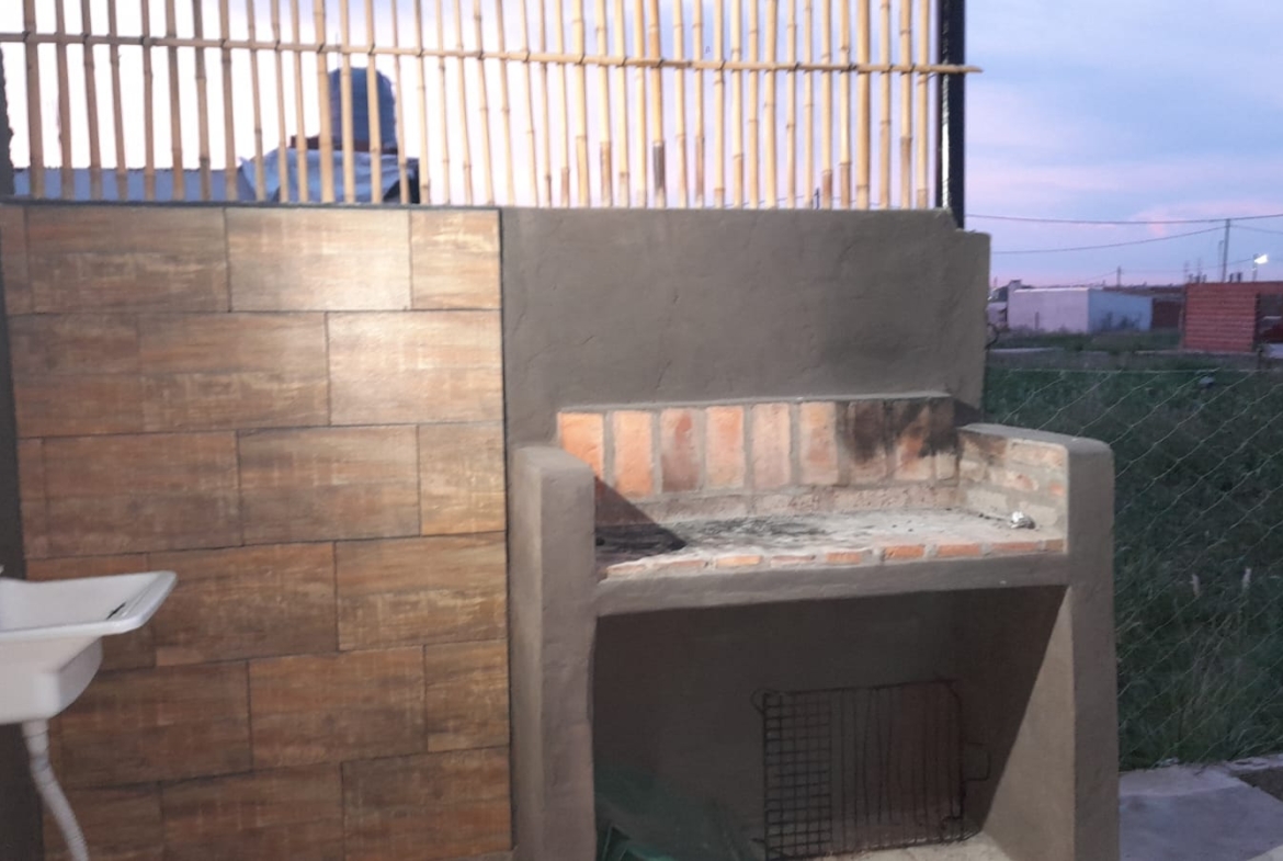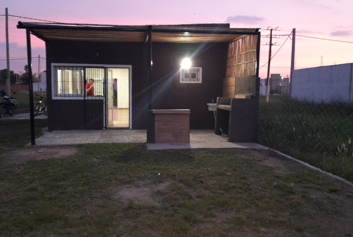 Cuenta con 2 ingresos, uno al frente y otro lateral. Posee baño y mesada en cocina. En la parte posterior una parrilla semicubierta.